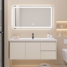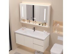 智能奶油陶瓷一體盆衛(wèi)生間浴室柜鏡柜組合輕奢簡約洗手臉盆洗漱臺